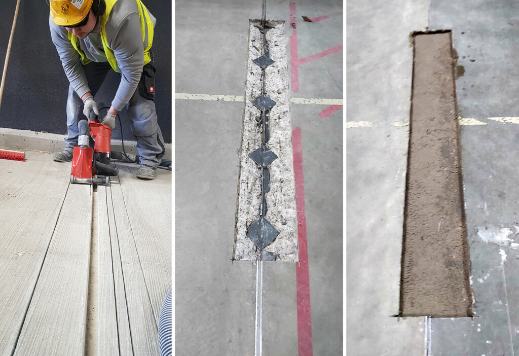 – cięta-wymuszona – nacinanie na 1/3 grubości płyty posadzki w celu kontrolowania ewentualnych spękań