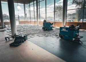 • Przygotowanie powierzchni pod nową posadzkę (np. żywice przemysłowe, wykładziny PVC, mikrocement).